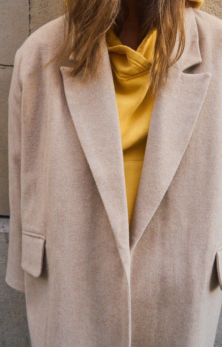 Με τη φαρδιά εφαρμογή και το γιακά με μπλέιζερ, το μακρύ γυναικείο παλτό Imibay έχει μια θηλυκή και εκλεπτυσμένη εμφάνιση. Κατασκευασμένο από ιταλικό μαλλί υψηλής ποιότητας με μοτίβο ψαροκόκαλου, είναι κομψό και μοντέρνο ταυτόχρονα. Αυτό το τολμηρό κομμάτι συμπληρώνει τόσο τα καθημερινά ντυσίματα όσο και τις πιο ντυμένες εμφανίσεις. Μακρύ παλτό Φαρδιά εφαρμογή Μακριά μανίκια Γλασκώτος με μπλέιζερ Δύο τσέπες με καπάκι στο μπροστινό μέρος Επένδυση από βισκόζη και πολυεστέρα Μείγμα ιταλικού μαλλιού Ταιριάζει στο μέγεθος. Επιλέξτε το συνηθισμένο σας μέγεθος.