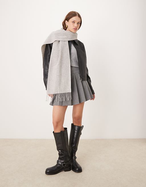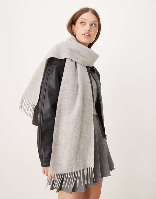 Αυτό το θηλυκό κασκόλ είναι πλεγμένο από μαλλί αρνιού με σχεδιασμένο φινίρισμα που είναι εξαιρετικά απαλό. Φινίρισμα με φούντα στο στρίφωμα.