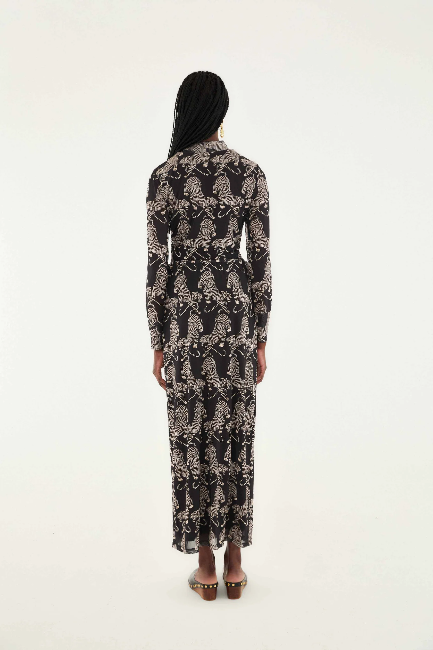 Αγκαλιάστε την άγρια κομψότητα της φούστας Black Striped Tigers Tulle Maxi από την FARM Rio. Κατασκευασμένη από διαφανές μαύρο τούλι, διαθέτει ένα εντυπωσιακό τύπωμα τίγρης σε απαλές μπεζ αποχρώσεις που υφαίνουν παιχνιδιάρικη κομψότητα. Η σιλουέτα αγκαλιάζει τη σιλουέτα με ένα απαλό ντραπέ, δημιουργώντας μια χαριτωμένη κίνηση που ρέει αβίαστα. Αυτή η φούστα προσκαλεί σε έναν χορό μεταξύ μυστικισμού και τόλμης, ιδανική για όσους αγαπούν το ζωηρό στυλ και τη διακριτική γοητεία.