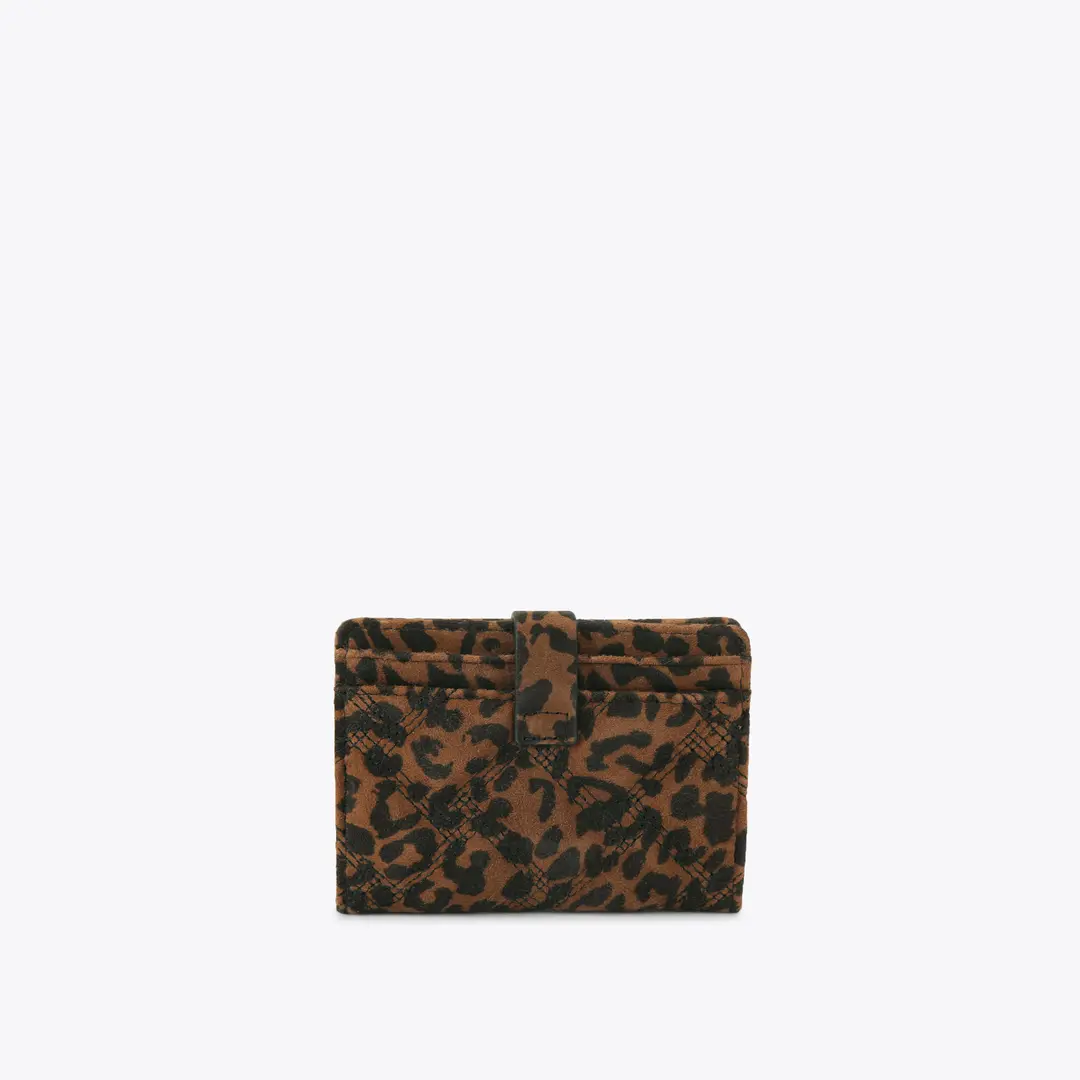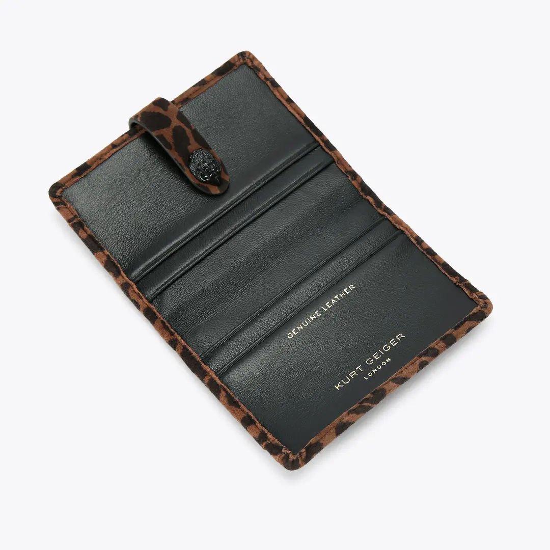 Η θήκη πολλαπλών καρτών είναι κατασκευασμένη από σουέτ δέρμα με λεοπάρ τυπωμένο σχέδιο. Το μαύρο κεφάλι αετού διαθέτει κρύσταλλα και μαύρες χάντρες που βρίσκονται στο κλείσιμο.