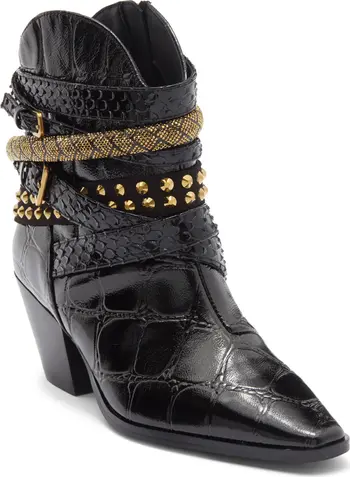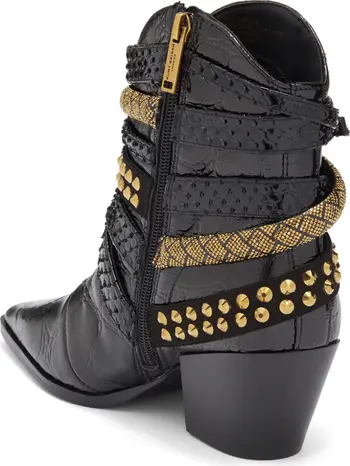 Αυτή η μπότα Western με πολλαπλά λουράκια είναι κατασκευασμένη από μαύρο δέρμα με πολλαπλά λουράκια γύρω από τον αστράγαλο. Η μύτη είναι μυτερή και η φτέρνα κεκλιμένη. Ύψος τακουνιού: 7 εκ. Φερμουάρ εσωτερικής πλευράς Υλικό: δέρμα