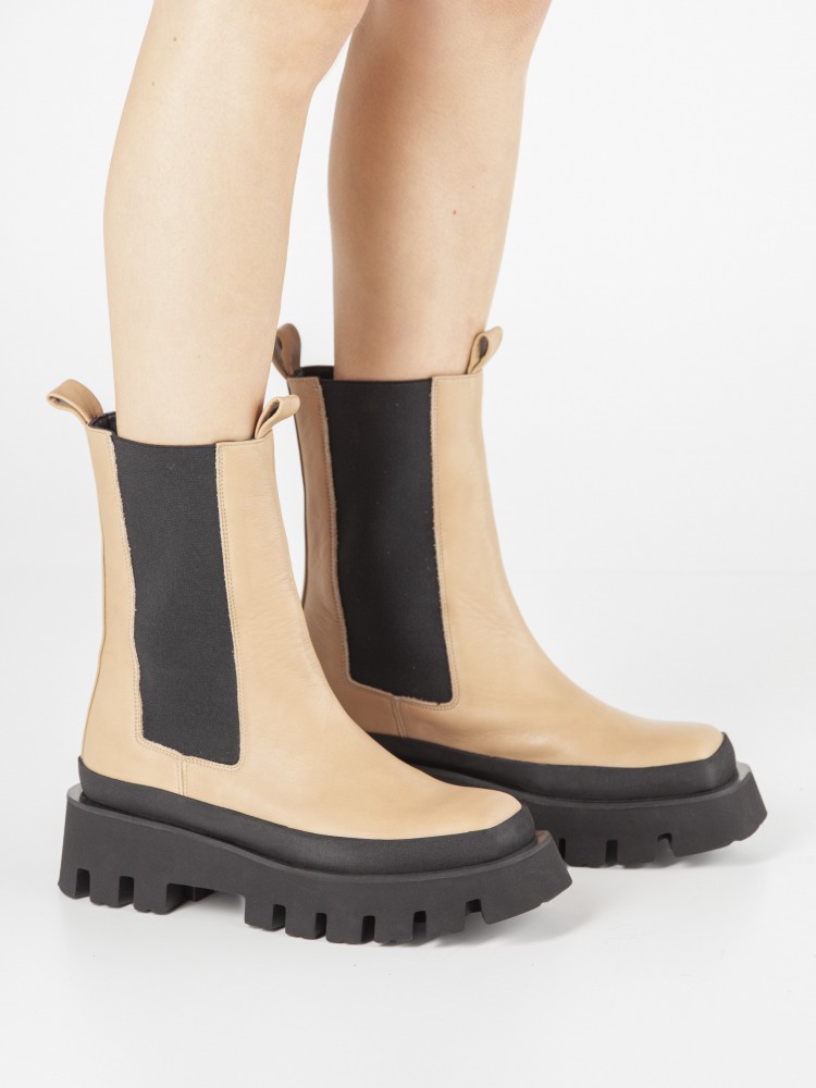 Paloma Barcelo Μποτάκι Catrine Napasoft Nocciola Paloma Barcelo Δερμάτινο Μποτάκι τυπού Chelsea με chunky σολα σε χρώμα nude και μαύρο Είδος κουμπώματος: Slip on, Λάστιχο Συνολικό ύψος παπουτσιού: 27 εκ. Ύψος σόλας: 3,5 εκ. Υψος τακουνιού 5 εκ. Κωδικός προϊόντος: Catrine Napasoft Nocciola
