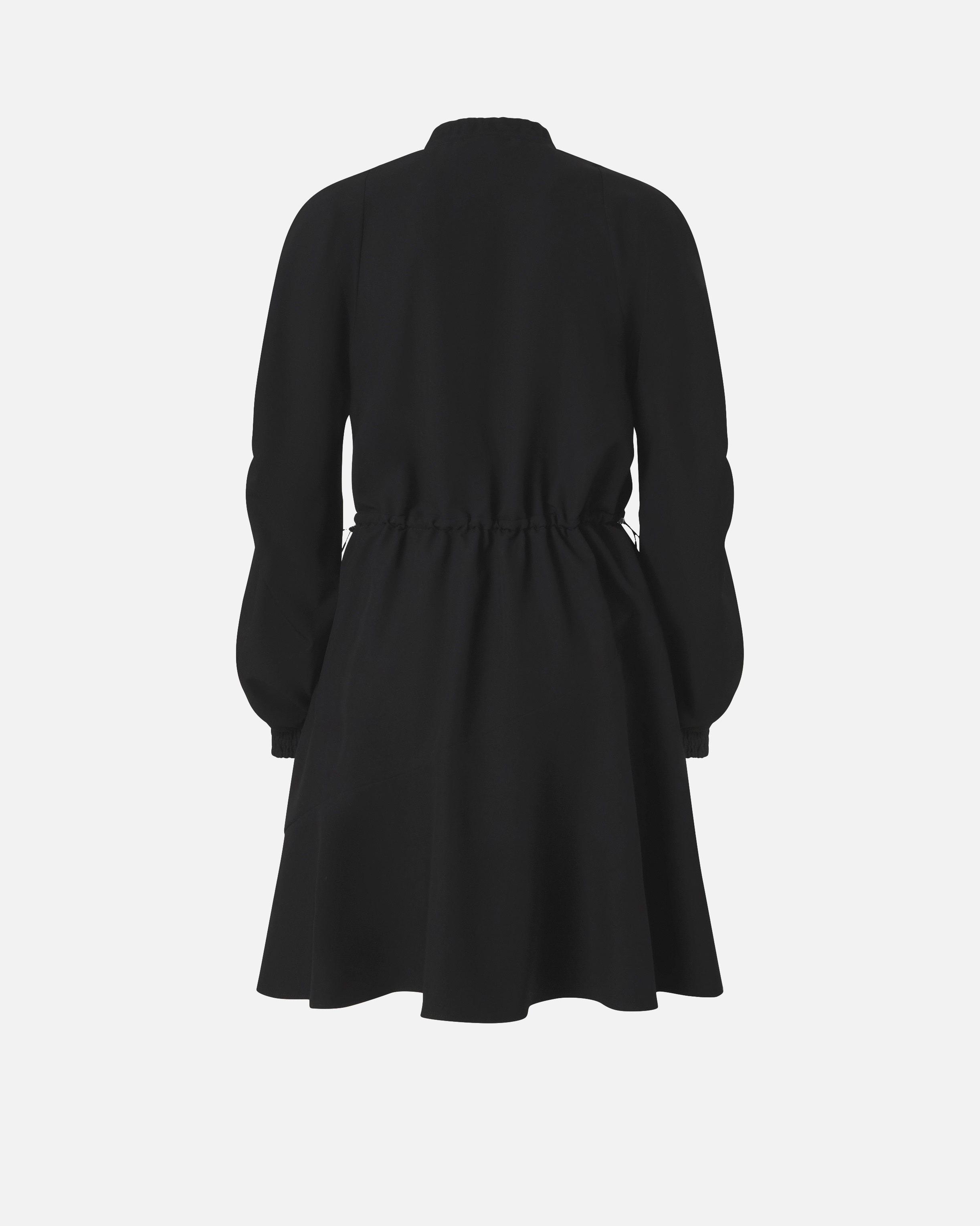 Κοντό φόρεμα από ελαστικό ύφασμα τεχνικής βισκόζης με ελαφρώς φαρδιά φούστα, γιακά Mandarin και μακριά φουσκωτά μανίκια που καταλήγουν σε ελαστικές μανσέτες. Ένα άνετο κορδόνι εμπνευσμένο από την πεζοπορία στη μέση σας επιτρέπει να ρυθμίσετε την εφαρμογή. Αυτό το εφαρμοστό στυλ είναι πιο σφιχτό στα πλάγια. Κλείνει με φερμουάρ μπροστά. Αυτό το φόρεμα είναι τόσο κομψό όσο και ευέλικτο: φορέστε το με ένα ζευγάρι μπαλαρίνες για μια καθημερινή εμφάνιση ή με ψηλοτάκουνα για να αναβαθμίσετε την ξεχωριστή βραδινή σας εμφάνιση.