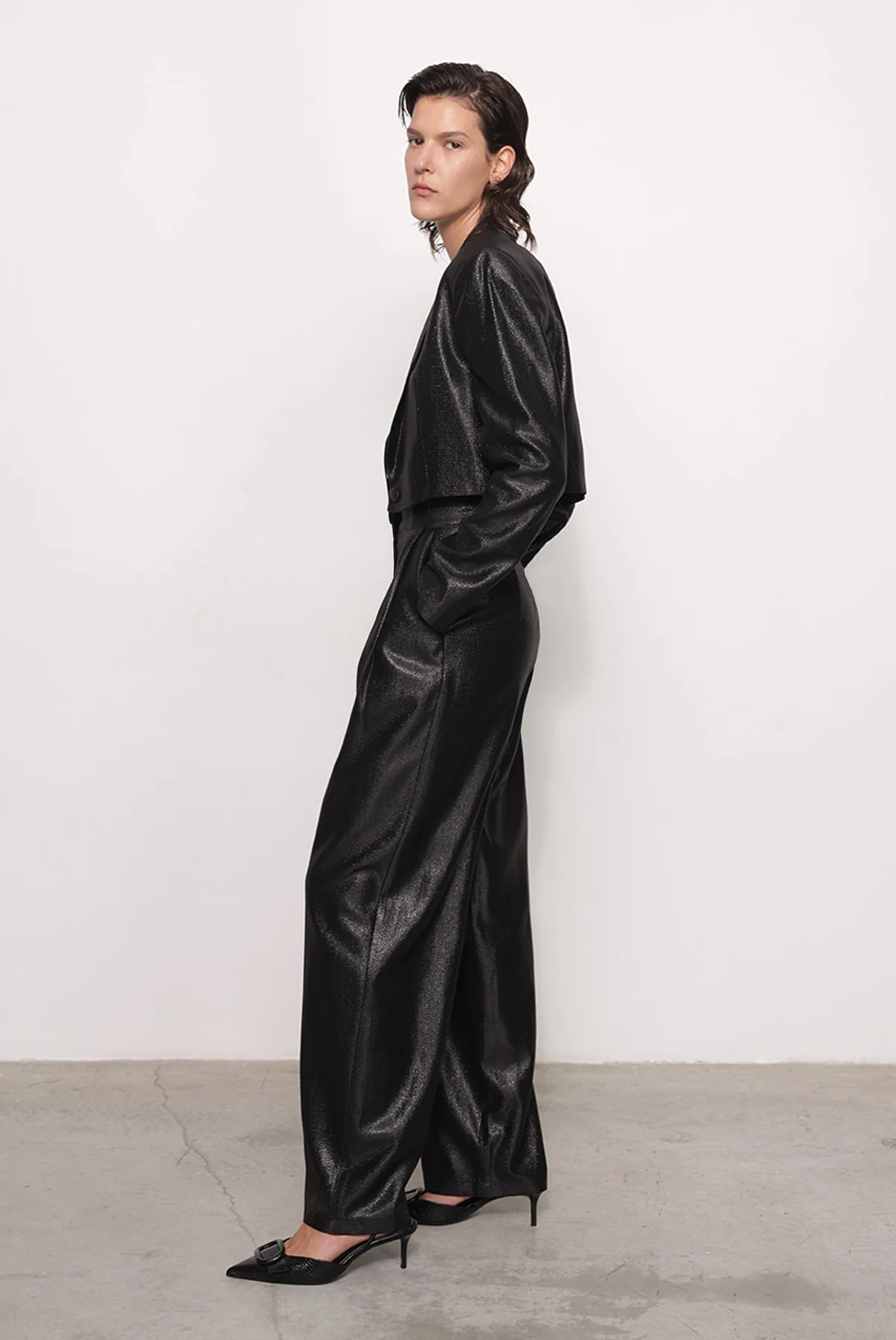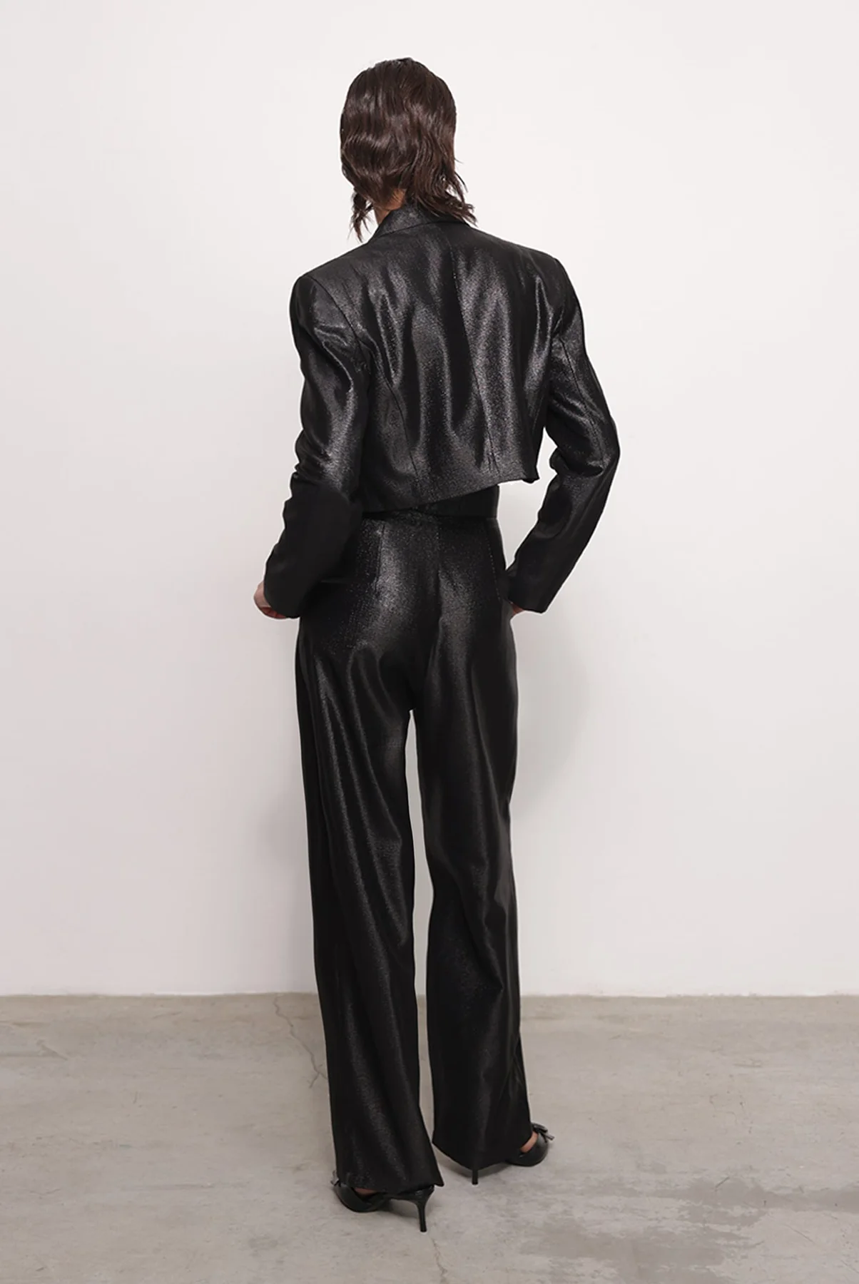 - Βραδινό ρεγιόν με κοντό μπουφάν από μείγμα lurex από την Sabina Musayev.